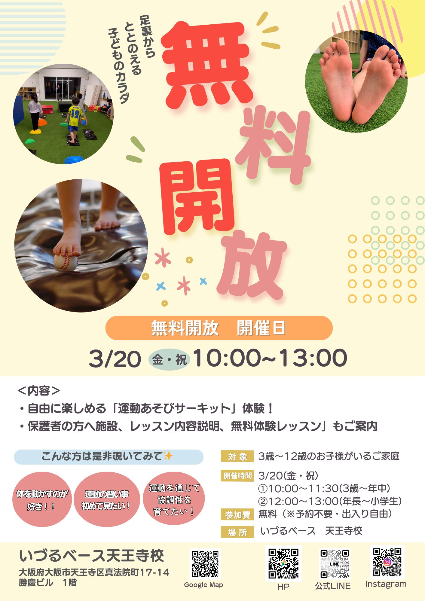 🌈 無料開放イベント開催のお知らせ(3/20 金・祝)
